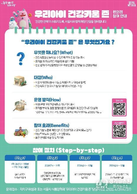 ‘우리아이 건강키움 존’은 어린이보호구역 내 편의점과 마트 등을 대상으로, 우유·두유·달걀 등 영양가가 높은 식품을 어린이 눈높이에 맞춰 우선 진열하고, 안내 표지물을 통해 해당 구역을 쉽게 알아볼 수 있도록 조성하는 사업이다. 어린이의 시선과 동선에 맞춘 진열 환경을 통해 일상에서 자연스럽게 건강한 식품 선택을 유도하는 데 목적이 있다.