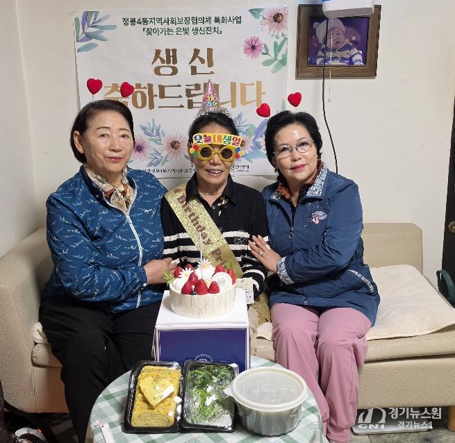 [경기뉴스원/경기뉴스1] | 서울 성북구 정릉4동 지역사회보장협의체가 4월 특화사업 ‘찾아가는 은빛 생신잔치’를 처음 추진하고 관내 독거어르신 가정을 방문해 생신을 축하했다.