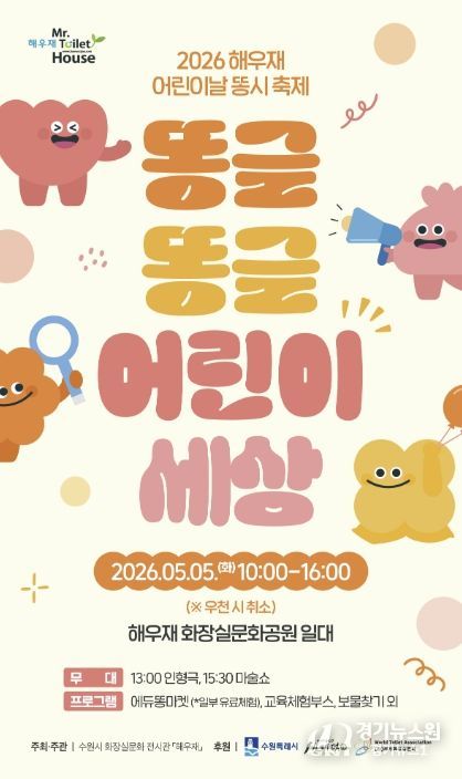 [경기뉴스원/경기뉴스1] | ‘2026 해우재 어린이날 똥시 축제-똥글똥글 어린이 세상’이 5월 5일 오전 10시부터 오후 4시까지 해우재 화장실문화공원 일원에서 열린다.