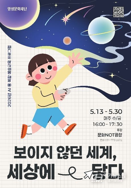 [경기뉴스원/경기뉴스1] | 양평문화재단은 미래세대를 위한 문화예술교육을 지원하기 위해 인공지능(AI) 기반 문화예술교육 프로그램 ‘보이지 않던 세계, 세상에 닿다’ 참여자를 모집한다.