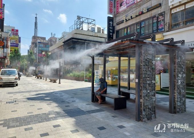 증발냉방장치는 옷이 젖지 않으면서도 즉각적인 냉각 효과를 제공해 보행환경 개선과 도시 열섬 현상 완화에 효과적이다. 지난해 경기도 재난관리기금으로 설치한 뒤 철산 로데오거리를 찾은 시민들에게 큰 호응을 얻었다.