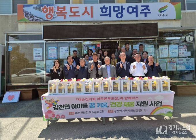 [경기뉴스원/경기뉴스1] | 강천면 지역사회보장협의체는 다가오는 제104회 어린이날을 맞아 지난 2026년 4월 30일 대순진리회 여주본부도장과 함께 ‘강천면 아이들 꿈 키움, 건강 채움’ 전달식을 가졌다.