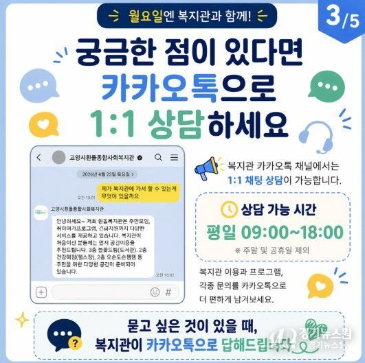 또 접근성이 높은 카카오톡 채널을 생활 밀착형 소통 창구로 활용한다. 휴관 안내 및 프로그램 참여자 모집 등 주요 소식을 정기적으로 발송하며, ‘자주 묻는 질문(FAQ)’ 기능과 ‘1:1 상담’ 서비스를 도입해 복지관 방문 없이도 궁금한 사항을 즉시 해결할 수 있다.