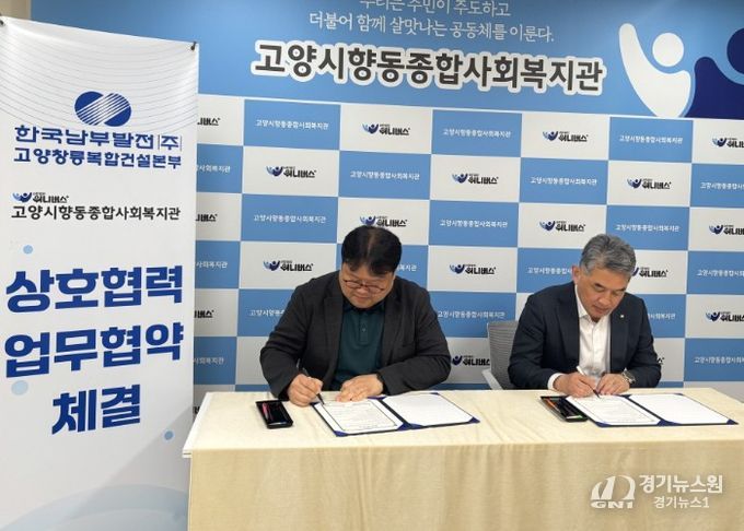 [경기뉴스원/경기뉴스1] | 고양시향동종합사회복지관은 지난 28일 한국남부발전 고양창릉복합건설본부와 지역사회 복지 증진을 위한 업무협약을 체결했다.