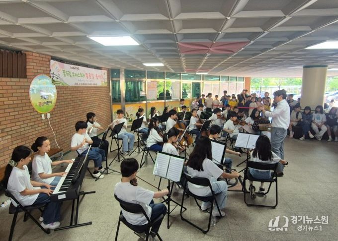 [경기뉴스원/경기뉴스1] | 하남풍산초등학교는 4월 30일 오전 등교 시간에 맞춰 학교 1층 중앙로비에서 ‘꿈드림 오케스트라 등굣길 음악회’를 운영했다.