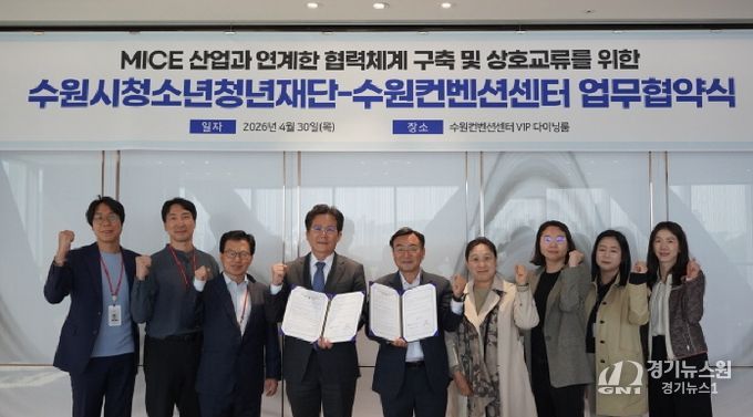 [경기뉴스원/경기뉴스1] | 수원시청소년청년재단(이사장 최종진)과 수원컨벤션센터가 4월 30일 양 기관의 상호 협력과 교류 확대를 위한 업무협약을 체결했다.