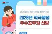 [경기뉴스원/경기뉴스1] | 김천시는 행정서비스 향상과 공익 증진, 사회문제 해결을 위해 2026년도 적극행정 우수공무원을 선발한다고 밝혔다. 시는 지난해에 이어 올해에도 적극적으로 일하는 공직문화를 지속적으로 조성하기 위해 연중 개인 16명, 팀 6팀을 선발할 계획이며, 지난해보다 포상금을 확대 마련해 적극행정에 대한 강한 의지를 드러냈다. 특히, 올해에는 적극행정 우수공무원 추천 기간을 연중 상시로 열어두어 특정 시기에 정해진 업무를 처리하는 것에서 벗어나 담당자가 주도적으로 업무를 추진할 수 있도록 장려한다. 동시에 시민들도 일상에서 변화를 체감할 때마다 적극행정 우수사례를 김천시 기획예산실로 추천할 수 있다. 추천된 사례는 사전심사 및 시민 투표를 거친 후, 인사위원회 심의·의결을 통해 최종 우수사례가 선정된다. 우수공무원으로 선발 시 특별승급, 성과상여금 최고등급의 인사상 우대 조치와 포상금, 포상휴가 등 인센티브가 지급될 예정이다. 배낙호 김천시장은 “김천시는 행정 효율을 높이기 위해 올해 1월 1일 자로 조직개편을 단행했다. 이와 함께 이번 적극행정 우수공무원 선발 등을 통해 모든 공직
