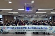 [경기뉴스원/경기뉴스1] | 제주특별자치도는 지난 30일 제주도 복지이음마루 대강당에서 도와 행정시, 사회복지기관 및 시설, 출자·출연기관 관계자 100여 명이 참석한 가운데 ‘2026년 사회복지 분야 주요 정책 공유 워크숍’을 개최했다. 이번 워크숍은 2026년 새롭게 도입되거나 확대되는 복지 사업의 방향성을 현장과 공유하고, 실효성 있는 정책 추진을 위한 소통의 장으로 마련됐다. 행사는 근로자건강센터 윤원진 강사의 ‘직무 스트레스 관리’ 특강을 시작으로 부서별 정책 발표, 질의응답 및 건의사항 청취 순으로 진행됐다. 특히 2026년 새롭게 도입되거나 확대 시행되는 복지 사업을 중심으로 정책 방향을 공유하는 데 초점을 맞췄다. 우선, 올해부터 손주돌봄수당을 신설하고, 읍·면 지역 사회복지 생활시설 종사자 교통비, 다함께돌봄센터 아동 중식비, 어린이집 외국인 아동 보육료를 새롭게 지원한다. 3월 27일부터 장애인·노인을 우선 대상으로 의료·요양·생활을 통합 지원하는 지역 기반 통합돌봄 체계를 시행하며, 제주가치돌봄과 제주형 건강주치의 연계를 통해 지역 중심 돌봄을 추진한다.