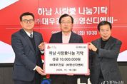 [경기뉴스원/경기뉴스1] | 지난 18일, ㈜대우건설, ㈜영신디엔씨는 성금 1,000만원을 하남시에 기탁했다. 이날 기탁식에는 이현재 하남시장을 비롯해 ㈜대우건설 안병관 본부장, 박인철 팀장, 정제형 팀장, ㈜영신디엔씨 강일형 회장, 김성욱 본부장, 오선희 부장이 참석했다. 이번 성금은 ㈜대우건설‘으쓱(ESG)투게더 기부챌린지’를 통해 마련된 것으로, 대우건설 임직원 및 최우수협력사 참여자들이 걸음 수를 모아 목표를 달성하면 기부가 이루어지는 사회공헌 활동이다. 이번 기부챌린지에는 최우수 협력사인 ㈜영신디엔씨도 함께 참여하여, 기부 목표 달성함에 따라 ㈜대우건설과 ㈜영신디엔씨 각 500만원씩 총 1,000만원을 기부했다. ㈜대우건설과 ㈜영신디엔씨는 “겨울철 어려움을 겪고 있는 저소득 가구에게 조금이나마 도움이 되기를 바란다.”고 말했다. 이현재 하남시장은“어려운 시기에 따뜻한 마음을 나눠주시는 ㈜대우건설, ㈜영신디엔씨에 깊이 감사드리며 기탁해 주신 성금은 따뜻한 겨울이 될 수 있도록 도움이 필요한 저소득 가구에게 소중히 전달하겠다”고 전했다.
