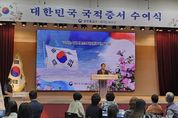 [경기뉴스원/경기뉴스1] | 법무부 양주출입국·외국인사무소는 2025. 9. 25. 관내‘경기섬유지원센터 컨벤션홀’에서 양주시 등 경기 북부지역에 거주하고 있는 귀화자 및 국적회복자 57명을 대상으로 국적증서 수여식을 개최했다. 2018. 12. 20. 국적법 개정에 따라 법무부장관 앞에서 하던 국민선서와 국적증서 수여는 귀화자 및 국적회복자 거주 지역별 출입국·외국인관서에서 시행하고 있다 이번 국적증서 수여식은 대한민국 국민이 되어 첫 번째로 맞이하게 될 ‘추석’ 민속명절의 의미를 되새기고, 한국 사회에서 소속감과 자긍심을 가지고 살아갈 수 있도록 격려하고 축하하는 뜻깊은 장이 됐다. 이날 행사는 △대통령 축하영상 시청, △귀화자 등 국민선서 및 국적증서 수여, △기관장 축사, △ 국적취득 대표자의 소감 발표 순으로 진행됐다 김용규 소장은 축사를 통해 쉽지 않은 과정을 거쳐 대한민국 국민으로서 사회 구성원이 된 국적 취득자에게 권리뿐만 아니라 책임과 의무의 막중함을 강조하면서 다양한 문화적 배경과 경험을 바탕으로 서로 간에 이해와 화합을 증진하는데 노력해 주기를 당부했다 또한, 국적증