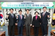 [경기뉴스원/경기뉴스1] | 진주시의회 의원 연구단체 ‘진주시 ESG 활성화 연구회’는 21일 올해 연구활동을 마감하는 결과보고회를 열고, 연간 추진 성과와 향후 정책 제언을 공유했다고 밝혔다. 이날 시의회 2층 회의실에서 열린 보고회에는 최지원 대표의원을 비롯해 윤성관·임기향·김형석·최호연 의원 등 연구단체 소속 의원들이 참석했다. 이들은 세계적인 추세인 ESG(환경·사회·지배구조) 경영 요구 확산에 대응해 진주시 행정 전반에서의 ESG 관점 도입, 중소기업 지원 정책 플랫폼 구축 등의 필요성에 뜻을 모았다. 이를 위한 주요 정책 과제로는 ▲지속가능발전목표(SDGs)와 연계한 시정 철학 정립 ▲단계별 ESG 교육·진단·컨설팅 및 인센티브 지원체계 마련 ▲시·공공기관·대학·지원기관이 참여하는 민·관·학 거버넌스 구축 ▲예산·감사·입법 등 지방의회 주요 역할에서의 ESG 평가 관점 강화 등이 꼽혔다. 연구회는 올해 3월 출범 이래 11월까지 기후·탄소중립 정책 강화에 따른 지역 산업 변화와 중소기업의 ESG 대응 현황을 집중적으로 살폈다. 특히 전문가 세미나로 연구의 깊이를 더하면서 경기도의회, 한국ESG평가원,