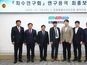 [경기뉴스원/경기뉴스1] | 강원특별자치도의회 의원연구단체인 치수연구회(회장 윤길로 의원, 간사 전찬성 의원)는 11월 19일 도의회 세미나실에서 '강원특별자치도 수변지역 관광자원화 방안 연구' 최종보고회를 개최했다.