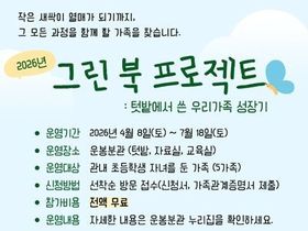 최원창 관장은 “그린북 프로젝트는 도서관의 물적 자원과 독서 프로그램을 결합한 새로운 형태의 가족 참여형 독서 사업”이라며 “아이부터 부모까지 함께 배우고 성장하는 독서 경험을 통해 지역사회 내 독서 문화가 더욱 확산되기를 바란다”고 밝혔다.