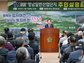 [경기뉴스원/경기뉴스1] | 창녕군은 27일 영남일반산업단지 조성사업 주민설명회를 개최하고 보상계획과 향후 추진 일정을 주민들에게 공식적으로 공유하며, 수년간 표류해 온 사업이 본궤도에 진입했음을 밝혔다. 이번 설명회는 민선 8기 출범 이후 군이 최우선 핵심과제로 추진해 온 산업단지 재가동의 실질적인 첫걸음으로 평가된다.