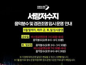 시 관계자는 “서랑저수지 음악분수 임시 운영하는 동안 철저한 점검을 통해 관광객과 시민들이 안전하고 즐겁게 음악분수를 즐길 수 있도록 최선을 다하겠다”라고 말했다.