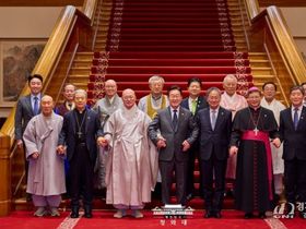 종교계를 대표해 한국종교지도자협회의 공동대표의장을 맡고 있는 조계종 총무원장 진우스님은 “오늘 오찬이 국민과의 소통을 중시하는 대통령의 국정 철학을 잘 보여주는 장면”이라고 감사를 표하면서 “국가 안보만큼이나 중요한 건 국민들의 마음 안보”라면서 “국민 마음의 평안, 국민 마음안보라는 공동 과제를 놓고 지속적으로 협력해나가길 기대한다”고 화답했다.