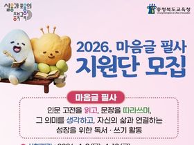 [경기뉴스원/경기뉴스1] | 충청북도교육청은 2일부터 10일까지 '2026. 마음글 필사 지원단'을 모집한다고 밝혔다.