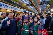 [경기뉴스원/경기뉴스1] | 이재명 대통령은 30일 오후 제주 타운홀미팅 '제주의 마음을 듣다' 종료 후, 김혜경 여사와 함께 1박 2일 제주 일정의 마지막 일정으로 동문시장을 방문했다. 동문시장은 제주시 도심에 위치한 대표적인 전통시장으로, 대통령 부부의 방문 소식에 상인들과 방문객들은 놀라움 속에 환호와 박수로 이들을 맞이했다. 입구에 서 있던 한 외국인 관광객은 어디서 왔냐는 이 대통령의 질문에 “오스트레일리아”고 답하기도 했다. 이 대통령 부부는 셀카촬영과 악수를 이어가며 과일모찌 가게에 들러 온누리상품권으로 한라봉모찌와 딸기모찌를 구입해 즉석에서 강유정 대변인, 하정우 수석 등과 함께 시식했다. 이동 내내 이어지는 셀카요청에도 이 대통령 부부는 반갑게 응했다. 그러자 시장을 찾은 많은 도민들은 이동 중인 이 대통령 부부를 향해 "사랑해요", "와 대박", "화이팅"을 외치는 소리로 화답했다. 이 대통령은 특히 어린이들의 사진 요청에 적극적으로 답했다. "애기 있어요"라는 소리가 들리면 발걸음을 멈추고 아이들과 하이파이브를 하거나 반갑게 셀카를 찍었다. 또한 강아지를