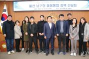 [경기뉴스원/경기뉴스1] | 울산 남구의회 최덕종 의원(더불어민주당, 신정4동·옥동)은 10일 3층 의회상황실에서 보건의료, 노인, 장애인 등 다양한 분야의 실무자들과 함께 남구형 돌봄통합 정책 간담회를 개최했다. 이번 간담회는 2026년 돌봄통합지원법 시행을 앞두고 울산 남구형 돌봄통합 정책의 추진 현황을 점검하고 제도적 뒷받침 방안을 모색하기 위해 마련됐다. 이 자리에는 남구 통합돌봄을 총괄하는 남구청 노인장애인과를 비롯해 남구보건소, 남구지역자활센터, 노인돌봄지원플랫폼, 율제요양병원, 울산사회복지협의회, 장애인돌봄사회적협동조합 등 지역 돌봄기관 담당자 15여 명이 참석했다. 이날 최덕종 의원은 돌봄통합 정책과 관련한 각 기관별 역할에 대해 청취한 후 수요자 중심 맞춤형 돌봄통합지원 방안과 기관 간 협력체계 구축 방안 등 원활한 사업 추진을 위한 실무적·정책적 방향에 대해 심도있게 논의했다. 내년 3월 전면 시행되는 돌봄통합지원법은 노인·장애인 등 돌봄이 필요한 주민이 살던 곳에서 건강하게 생활할 수 있도록 지역이 의료·요양·돌봄을 통합 제공하는 제도다. 남구는 지역형 통합돌봄 모델