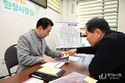 [경기뉴스원/경기뉴스1] | 의정부시는 1월 23일 호원2동 주민센터에서 새해 첫 ‘현장시장실’을 열고 시민들과 소통의 시간을 가졌다. 이번 현장시장실은 시민들의 생활 속 불편사항을 직접 듣고 신속히 해결 방안을 모색하기 위해 마련했다. 시는 주민이 체감할 수 있는 현장 중심 행정을 강화하고, 지역 맞춤형 정책을 추진하기 위한 소통의 장으로 운영하고 있다. 상담에 앞서 주민들과 함께 지난해 3월 개장한 직동근린공원 진입광장을 방문해 현장을 둘러봤다. 주민들은 광장 내 휴게공간 및 무대 활용 방안 등에 대한 다양한 의견을 제시하며 개선점을 논의했다. 이어 호원2동 주민센터 3층 소회의실에서 열린 106회 현장시장실에서는 최근 접수된 주요 민원과 지역 현안을 공유했다. 이날 현장시장실에서 주민들은 ▲가로수 뿌리로 인해 들뜨고 파손된 보도블록 정비 ▲외미마을 중앙도로 하수도 청소 및 정비 등을 요청했다. 시는 이번 현장시장실에서 제기된 의견들을 관련 부서와 협의해 실질적인 개선이 이뤄질 수 있도록 후속 조치를 이어갈 방침이다. 또한, 반복적으로 제기되는 생활불편 사항은 부서 간 협업을 통해