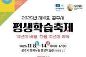 [경기뉴스원/경기뉴스1] | 공주시는 오는 8일부터 14일까지 행복누림 일원에서 ‘10년의 배움, 다음 10년의 약속’을 주제로 제10회 공주시 평생학습축제를 개최한다. 올해 축제는 공주시가 평생학습도시로 지정된 지 10주년을 맞아 마련된 행사로, 시민이 배우고 나누는 학습공동체의 가치를 확산하고 탄소중립 실천과 지역 중심의 학습 확장을 실현하는 지속가능한 평생학습축제로 진행된다. 개회식은 11월 8일 오후 2시 행복누림 5층 대강당에서 열리며, 식전공연 ‘박동진 판소리 꿈나무’를 시작으로 평생학습 유공자 표창과 10주년 기념 퍼포먼스가 이어진다. 이후 공주시 평생학습동아리의 공연과 체험 프로그램이 진행돼 축제의 열기를 더할 예정이다. 행복누림 1층 마주침공간에서는 탄소중립 실천을 위한 친환경 체험 프로그램이 운영되며, 2층부터 5층까지는 평생학습 관련 기관과 동아리들이 운영하는 체험 및 전시 부스가 마련된다. 또한 5층 대강당에서는 다채로운 공연이 펼쳐진다. 특히 올해는 평생학습도시 지정 10주년을 기념해 각 읍면 평생학습센터가 주체가 되어 11일부터 13일까지 3일간 ‘