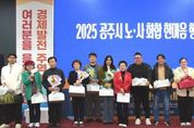 [경기뉴스원/경기뉴스1] | 공주시는 지난 5일 경복궁웨딩홀에서 ‘2025 공주시 기업인협의회 노사화합 한마음대회’를 성황리에 개최했다고 밝혔다. 공주시 기업인협의회 주관으로 열린 이날 행사에는 관내 기업인과 근로자 250여 명이 참석해 의미를 더했다. 1부 행사에서는 기업 발전과 지역경제 활성화에 기여한 기업 대표 및 모범 근로자 28명이 표창을 받았으며, 공주시 우수 중소기업으로 선정된 ㈜라미그린텍(대표 한진배·박희성) 등 8개 업체가 우수 중소기업 현판과 인증서를 수여받았다. 기업인협의회는 지역사회 나눔 실천을 위해 어려운 이웃 돕기 성금 600만 원을 기탁하고, 공주정명학교에 장학금 200만 원, 공주장애인체육회에 후원금 200만 원을 전달했다. 공주시는 취약계층 지원에 대한 관심과 헌신에 감사의 뜻을 담아 기업인협의회에 감사패를 수여했다. 이어진 2부 행사에서는 초청 가수의 축하 공연과 장기자랑이 진행되어 참석자들이 한 해 동안의 노고를 위로하고 노사 간 공감대를 형성하는 화합의 시간을 가졌다. 최원철 시장은 “공주시 발전에 중추적인 역할을 해주시는 기업인과 근로자