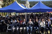[경기뉴스원/경기뉴스1] | 포천문화관광재단은 지난 17일 영중면 영평리에 위치한 포천38문화예술창작소(옛 영평초등학교)에서 ‘내 삶을 예술로 채워가는 열린 창작공간, 포천38문화예술창작소 개관식’을 성황리에 개최했다. 개관식은 100여 년의 역사를 가진 영평초등학교가 2022년 폐교된 이후, 시민과 예술가를 위한 복합 문화창작공간으로 새롭게 태어난 의미 있는 순간을 기념하는 자리였다. 백영현 포천시장, 임종훈 포천시의회 의장, 박명석 영평초 장학회장, 이중효 포천문화관광재단 대표이사를 비롯해 내외빈과 시민 등 300여 명이 참석해 개관을 축하했다. 행사는 (사)한국풀피리협회의 식전 공연으로 막을 올렸으며, 경과보고와 기념사, 축사, 인사말 순으로 이어졌다. 이날 행사에서는 영평초 역사관 자료를 기증한 7명에게 감사패를 수여했다. 이어 포천시립소년소녀합창단이 영평초 교가를 제창했다. 기념식 후에는 창작소 조형물 제막식과 함께 115년의 역사를 상징하는 ‘115마리 친환경 비둘기 날리기 퍼포먼스’를 진행했다. 백영현 포천시장과 졸업생 대표, 시민들이 함께 제막 버튼을 누르며 예술창작소의 새로운 출발을 축하했다.