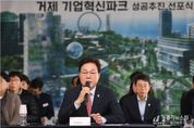[경기뉴스원/경기뉴스1] | 경상남도와 거제시, 참여기업이 함께 추진하는 ‘거제 기업혁신파크’가 미래형 융합도시 조성을 향한 실행 의지를 공식적으로 천명했다. 박완수 도지사는 18일 소노캄 거제에서 열린 ‘거제 기업혁신파크 성공추진 선포식’에서 사업의 국가적·지역적 의미를 강조하며 “거제시를 세계적인 관광도시로 만들 것”이라고 밝혔다. 선포식에는 박완수 도지사, 변광용 거제시장, 서일준 국회의원을 비롯해 그란크루세·네이버클라우드·다산네트웍스·디스트릭트코리아·수산인더스트리 등 주요 참여기업 대표와 도·시의원이 참석했다. 박 지사는 이날 사업 추진 의지를 밝히며, “디지털 융합 미래도시 성공추진을 위한 협의 자리가 마련된 것을 매우 뜻깊게 생각한다”고 말했다. 이어 “각 분야에서 대한민국 최고 역량을 갖춘 기업들이 함께하는 만큼 기업혁신파크에 대한 기대가 크다”고 밝혔다. 또한 박 지사는 장목관광단지 조성이 본격 추진된 과정을 설명하며 “26년 만에 조성 사업이 재개된 이후로 제대로 만들기 위해 추진해왔다”며 “기업혁신파크 지정 이후, 단일 관광단지로는 세계적 프로젝트를 만들기 어렵다고 판단해 범위를