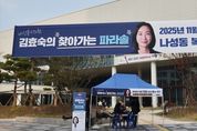 [경기뉴스원/경기뉴스1] | 김효숙 세종특별자치시의회(나성동, 더불어민주당) 부의장이 시민과 직접 소통하고 세종시와 나성동 발전을 위해 고견을 듣는 ‘찾아가는 파라솔’ 행사를 13일 오전 10시부터 오후 5시까지 나성동 행복누림터 앞에서 개최했다. 지난 2023년 11월 의정보고회 개최 이후 더 많은 시민을 만나기 위해 지난해부터 11월이면 야외에 아침부터 저녁까지 파라솔을 펴고 주민과 당원을 만나는 자리를 마련하고 있다. 김효숙 부의장은 “정해진 짧은 시간 동안 이뤄지는 보고회 형식으로는 더 많은 분을 뵙기 어려워 하루 종일 시민을 기다리는 현장 상담 방식을 바꿨다”며 “생각보다 많은 분이 찾아와주셨는데 오전 10시부터 시작인데도 오전 9시 20분부터 기다리고 계시는 시민분도 계셨고, 오가다 편하게 들리거나 지난해에 이어 또 방문하신 단골 주민도 생겼다”고 설명했다. 이어 “우리 지역을 위해 일하는 시의원과 커피 한 잔 하며 편하게 현안에 대해 대화할 수 있다는 것을 가장 좋게 평가하시는 것 같다”며 “나성동 학생들의 통학 및 진학, 도시상징광장 활성화, 어반아트리움 등 상가공실 문제 등 나성동 주요 현안에