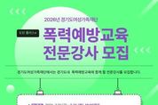[경기뉴스원/경기뉴스1] | 경기도여성가족재단은 ‘도민 플러스+ 폭력예방교육 사업에 참여할 전문강사’를 26일까지 모집한다. 경기도여성가족재단이 올해 처음 추진하는 도민 플러스+ 폭력예방교육 사업은 교육 수요가 있는 현장에 전문강사가 직접 찾아가 도민들에게 4대폭력 예방교육을 한다. 모집대상은 경기도 내에서 활동하는 성희롱·성폭력·성매매·가정폭력 등 폭력예방교육 분야 전문강사이며, 재단 교육포털 누리집을 통해 지원하면 된다. 서류심사와 시연평가를 거쳐 3월 12일 10명 내외로 선발된 전문강사는 재단과 함께 경기도내 폭력예방교육을 수행하게 된다. 선발 후, 3월 18일 강사 역량강화교육 및 워크숍 참석은 필수이다. 경기도여성가족재단 담당자는 “성평등 문화 확산과 안전한 지역사회 조성에 관심 있는 전문강사들의 적극적인 참여를 기대한다”고 말했다. 모집과 관련한 자세한 사항은 재단 누리집을 참고하거나 경기도여성가족재단 성평등교육사업팀으로 문의하면 된다.