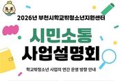 [경기뉴스원/경기뉴스1] | 부천시학교밖청소년지원센터는 오는 2월 25일, 오후 2시 학교밖청소년 전용공간 부.스.터. (송내어울마당 1층)에서 시민과의 소통을 확대하고 2026년 연간 운영계획을 공유하는 ‘사업설명회’를 개최한다고 밝혔다. 이번 시민 소통 사업설명회는 부천여성청소년재단(대표이사 이강인)이 운영하는 부천시학교밖청소년지원센터(센터장 백진현)가 학교밖청소년, 보호자, 유관기관, 지역시민과 함께 한 해의 운영 방향을 공유하는 자리이다. 특히 청소년이 자신의 삶과 진로를 스스로 기획해보는 시간으로 구성되며, 단순한 사업 안내를 넘어 청소년의 주도적 성장과 참여 중심의 운영 문화를 만들어가는 계기가 될 예정이다. 올해부터 학교밖청소년지원센터는 프로그램 모집·운영 방법을 개편하여 봄학기·여름학기 각 10주 과정의 ‘학기제 운영’으로 전환한다. 이에 따라 교육, 내일지원(자립), 문화활동, 정서지원, 복지 등 전 분야 사업이 체계적으로 구성되며, 청소년이 자신의 목표에 맞춰 단계적으로 참여할 수 있도록 설계됐다. 설명회에서는 ▲검정고시 및 기초학습 등 교육지원 ▲자격 취득 및 기술훈련 중심의 내일지원 ▲동