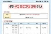 [경기뉴스원/경기뉴스1] | 광명도시공사는 광명건강체육센터에서 시민들의 건강 증진과 생활체육 활성화를 위해 체육관 및 GX실 4월 신규 프로그램 회원을 모집한다고 밝혔다. 이번 신규 프로그램은 성인과 청소년 대상으로 탁구, 배드민턴 등 생활체육 프로그램과 어린이 대상으로 어린이 풋살교실, 음악줄넘기, K-POP댄스, 발레 등 다양한 신체활동 프로그램으로 구성됐다. 신청은 3월 20일까지 안내데스크 방문을 통해 사전 접수가 가능하며, 3월 26일부터 3월 31일까지 본 접수 및 결제가 가능하다. 서일동 사장은 “시민들이 일상 속에서 건강한 생활체육 활동을 즐길 수 있도록 다양한 프로그램을 마련했다”며 “앞으로도 시민들의 건강 증진과 여가 활성화를 위해 체육시설 프로그램 운영에 최선을 다하겠다”고 말했다.