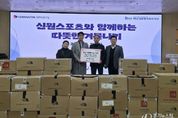[경기뉴스원/경기뉴스1] | 지난 11일, 스포츠 유통회사인 ㈜신원스포츠는 연말을 맞아 지역사회 취약계층을 지원하기 위해 의류 및 용품 900장(5천만원 상당)을 하남시종합사회복지관에 기탁했다. 이날 하남시종합사회복지관에서 열린 기탁식에는 조연식 복지국장을 비롯하여, 황원식 대표, 김성수 경기도의원이 함께 참석했다. 황원식 대표는 “추운 겨울을 보내는 어려운 이웃들에게 조금이나마 도움이 되길 바라는 마음으로 기탁을 결정했다”며, “앞으로도 따뜻한 나눔 활동을 이어가겠다”라고 기탁 소감을 밝혔다. 조연식 복지국장은“따뜻한 나눔을 실천해준 ㈜신원스포츠에 감사드리며, 겨울철이 다가오면서 도움이 필요한 분들이 많아지고 있는데 이번 방한용품이 큰 보탬이 될 것으로 기대된다”라고 감사 인사를 전했다. 한편, 이번에 기탁된 성품은 하남시종합사회복지관을 통해 한부모가정, 취약아동 등에게 전달되어, 겨울철 생활에 실질적인 도움이 될 예정이다.