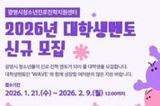 [경기뉴스원/경기뉴스1] | 광명시청소년재단 청소년진로진학지원센터는 관내 중·고등학교 청소년 대상 학과 멘토링 운영을 위해 ‘2026년 대학생 멘토단(wave)’을 모집한다고 밝혔다. 대학생 멘토단(wave)은 대학생 멘토가 전공 및 진로 경험을 바탕으로 청소년에게 학과 정보, 전공 이해, 진학 준비 방향 등을 제공하는 프로그램으로, 학교 현장과 연계한 멘토링 활동을 통해 청소년의 진로·진학 역량 강화를 지원한다. 모집 대상은 4년제 대학교 재학생·휴학생 또는 대학원 재학생·휴학생(2026학년도 입학 예정자 포함)으로, 1년 이상 활동 가능한 대학생이면 지원할 수 있다. 선발된 멘토에게는 역량강화 교육이 제공되며, 멘토링 활동 참여 시 소정의 활동비 지급 또는 봉사시간 인정 등 참여 혜택이 지원된다. 신청은 2026년 2월 9일 12:00까지 구글폼을 통해 가능하며, 자세한 사항은 광명시청소년진로진학지원센터 홈페이지 내 모집 공고문을 통해 확인할 수 있다. 광명시청소년진로진학지원센터 박사라 센터장은 “이번 멘토단 운영을 통해 청소년에게는 실질적인 진학 정보와 멘토링 기회를 제공하고, 대학생에게는 지