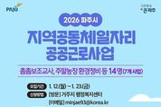 [경기뉴스원/경기뉴스1] | 파주시가 오는 23일까지 2026년 상반기 지역공동체 일자리 및 공공근로사업 참여자 14명을 모집한다고 밝혔다. 지역공동체 일자리와 공공근로사업은 취업 취약계층에게 공공일자리를 제공해 최소한의 생계를 보장하고 재취업을 위한 도전의 발판을 마련하기 위한 일자리 지원 사업이다. 지역공동체 일자리사업은 ▲주말농장 환경 정비 ▲촘촘보조교사 ▲마을정원 조성 및 유지관리 등 4개 분야에서 총 11명을, 공공근로사업은 ▲청소년 활동 프로그램 보조 ▲초등 생존수영 프로그램 업무 지원 ▲어린이보호구역 폐쇄회로텔레비전(CCTV) 집중 관제 등 3개 분야에서 총 3명을 각각 모집한다. 선발자들은 3월 3일부터 6월 26일까지 약 4개월간 주 5일 근무하게 되며, 4대 보험 가입과 함께 주휴수당 및 연차수당이 지급된다. 지역공동체 일자리사업의 시간당 임금은 1만 320원이며, 근무일마다 부대비 5천 원이 별도로 지급된다. 공공근로사업의 시간당 임금은 1만 2,070원이다. 참여 자격은 ▲사업개시일 기준 18세 이상 ▲재산 4억 원 이하를 만족하고, 가구소득은 기준중위소득을 기준으로 지역공동체