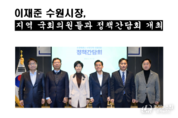 경기뉴스원(경기뉴스1) | 이재준 수원시장은 14일 라마다프라자수원호텔에서 수원 지역 국회의원들과 정책간담회를 열고 지역 현안 해결을 위한 협력을 요청했다. 이날 간담회에는 백혜련, 김영진, 김승원, 김준혁, 염태영 의원 등이 참석했다. 이 시장은 ▲경기남부광역철도 추진 ▲수도권 과밀억제권역 규제완화 ▲특례시 지원법 제정 ▲‘정조대왕 능행차’ 국가무형유산 등재 등 주요 현안에 대해 국회의 협력을 부탁했다. 또한, 민선 8기 후반기 시정 목표인 ‘시민 체감 수원대전환’을 위한 핵심사업 추진과 ▲신분당선 연장(광교~호매실)·광역급행철도(GTX)-C노선·동탄인덕원선·수원발 KTX직결사업 등 ‘격자형 광역철도망 구축사업’의 차질 없는 진행 ▲‘수원경제자유구역’ 지정 ▲군공항 주변 주변 지역 고도 제한 완화 ▲수원 4대 하천 중심의 수변도시 조성 등이 핵심사업을 논의했다. 국회의원들은 “필요한 법안 제·개정을 통해 수원시가 더 살기 좋은 도시로 발전할 수 있도록 협력하겠다”고 약속했다. 수원시와 지역 국회의원들은 분기별로 정책간담회를 열어 협력을 강화하고 있다.