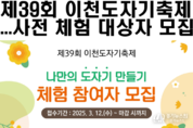 경기뉴스원(경기뉴스1) | 이천시(시장 김경희)는 제39회 이천도자기축제의 일환으로 ‘나만의 도자기 만들기’ 사전 체험 행사를 개최한다. 축제는 2025년 4월 25일부터 5월 6일까지 이천도자예술마을과 사기막골도예촌에서 열린다. 체험자는 축제 전 공방에서 물레 체험을 통해 도자기를 제작하고, 축제 기간 중 완성된 작품을 찾을 수 있다. 사전 체험은 3월 15일부터 4월 10일까지 매일 오전 10시와 오후 2시에 진행되며, 체험비는 50% 할인된 가격으로 제공된다. 신청은 이천도자기축제 공식 홈페이지에서 3월 12일부터 선착순으로 가능하다. 김경희 이천시장은 “사전 체험을 통해 도자기의 매력을 경험하는 기회가 되길 바란다”고 말했다. 자세한 사항은 이천도자기축제 공식 누리집에서 확인할 수 있다.