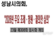 【경기 성남=경기뉴스원/경기뉴스1】 | 성남시의회가 오는 23일(금) 제308회 임시회를 열고, 시민 생활 안정과 도시 개발, 복지, 교육, 교통 등 다양한 분야에 걸친 주요 조례안, 청원, 결의안, 건의안을 심의할 예정이다. 이번 임시회에서는 2026년 시민 생활과 직결되는 안건들이 대거 상정돼 주목된다. 시민 생활 안정·복지 강화 조례, 상·하수도 요금 인상 유예 조례안 구재평 의원 등은 경기 침체로 인한 시민 부담 완화를 위해 2026년도 상수도·하수도 요금 인상을 유예하는 조례안을 발의했다. 이는 시민들의 생계비 부담 경감과 안정적 생활 지원을 목적으로 한다. 어린이·사회복지급식관리지원센터 설치·운영 조례안 박명순 의원 등은 어린이, 노인, 장애인 등 취약계층 급식소에 대한 위생·영양 관리 지원을 위해 센터 설치와 운영, 지원대상, 예산, 업무 위탁 사항 등을 규정했다. 사람유두종바이러스(HPV) 예방접종 지원 조례안 김종환 의원 등은 국가 예방접종 대상에서 제외된 시민을 위해 예방접종 비용을 지원, 자궁경부암 예방과 시민 건강권 확보를 목표로 한다. 도시계획·재생·건축 조례 개정 도시계획 조례 일부개정: 개발행위허가와 성장관리계획 관련 조항 명확화