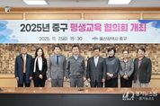 [경기뉴스원/경기뉴스1] | 울산 중구가 11월 7일 오후 3시 30분 중구청 소회의실에서 2025년 중구 평생교육협의회를 개최했다. 중구 평생교육협의회는 평생학습 계획 수립·시행 및 제도 개선, 평생교육 유관기관 협력 증진에 관한 의견을 제시하는 기구로, 의장인 김영길 중구청장과 평생교육 전문가, 장애인 평생교육 관계자, 강북교육지원청 관계자 등 12명으로 구성돼 있다. 이날 참석자 8명은 올 한 해 평생학습 사업 성과와 내년도 평생학습 사업 추진계획 등을 살펴보고 다양한 의견을 나눴다. 한편, 중구는 지난 2007년 평생학습도시로 지정된 이후 다양한 평생학습 사업을 운영하며 평생학습 저변 확대에 힘쓰고 있다. 김영길 중구청장은 “평생학습을 통해 지역의 발전을 도모할 수 있도록 위원들의 적극적인 협조를 부탁드린다”며 “앞으로도 언제, 어디서나, 누구나 공평하게 배움의 기회를 누릴 수 있도록 평생학습 문화 확산에 힘쓰겠다”고 밝혔다.