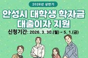 [경기뉴스원/경기뉴스1] | 안성시는 대학생 및 대학원생들의 교육비 부담을 덜어주기 위해 ‘2026년 상반기 대학생 학자금 대출이자 지원사업’을 시행한다고 밝혔다. 지원 대상은 공고일(2026. 3. 24.)기준으로 안성시에 주소를 두고 있는 대학생 및 대학원생(휴학생 포함)이다. 신청 기간은 3월 30일부터 5월 1일까지이며, 신청을 희망하는 학생은 주소지 읍·면·동 행정복지센터 또는 안성시청(미래교육과)를 방문하여 신청서와 구비서류(주민등록등본, 재학증명서)를 제출하면 된다. 지원 대상자로 선정되면 대상자가 한국장학재단에서 대출받은 학자금에 대한 2025년 하반기(7월~12월) 발생 이자를 안성시가 지급하게 된다. 지급은 대출 계좌 원리금에서 차감하는 방식으로 진행되며, 지원 결과발표 및 이자는 오는 6월 지급 예정이며, 확정된 시점에 한국장학재단 인터넷 홈페이지 및 고객센터에서 확인할 수 있다. 안성시 관계자는 “학자금 대출이자 지원사업을 통해 대학생들의 학업 부담을 완화하고, 학업에 전념할 수 있는 환경을 조성하는 데 도움이 되길 바란다”고 말했다.