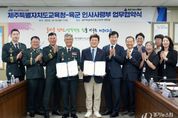 [경기뉴스원/경기뉴스1] | 제주특별자치도교육청은 13일 도교육청 상황실에서 육군 인사사령부와 고등학생들의 진로 탐색 기회 확대를 위한 업무협약을 체결했다. 이번 협약을 통해 양 기관은 군 관련 진로교육 활성화, 학교별 육군 간부 모집 설명회 지원, 대학입학정보박람회 협력, 군 특성화고 및 부사관학과 운영학교 대상 진로·직업 소개 및 모집 홍보 등 다양한 분야에서 상호 협력하기로 했다. 도교육청은 이번 협약을 계기로 학생들이 군의 다양한 역할과 직업적 비전을 올바르게 이해하고 군 진로를 미래의 선택지로 인식하는 데 도움이 될 것으로 기대하고 있다. 김광수 교육감은 “학생들이 진로를 탐색하는 과정에서 군이 가진 사회적 가치와 다양한 직무 영역을 직접 체험할 수 있도록 지원하겠다”라며 “교육청과과 군이 함께 협력하여 미래인재 양성에 기여할 것”이라고 말했다.