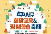 [경기뉴스원/경기뉴스1] | 부산 서구는 오는 11월 1일 송도오션파크에서 서부교육지원청과 공동으로 '2025년 서구 희망교육 & 평생학습 축제'를 개최한다. 이번 축제는 ‘아이부터 어른까지, 함께 배우고 나누는 즐거운 하루’를 주제로 오전 11시부터 오후 4시까지 다채로운 프로그램이 펼쳐질 예정이다. 대신여자중학교의 신나는 밴드 공연을 시작으로, 관내 7개 학교, 10개 학생 동아리, 12개 평생학습 동아리가 참여해 열띤 무대를 선보인다. 또한 38개의 특색 있는 체험부스, 온가족 플리마켓, 희망교육 & 평생학습 작품 전시회 등 풍성한 볼거리와 즐길거리로 가득할 예정이다. 특히 오는 11월 22일 개관 예정인 서구아미드림도서관 홍보‧체험부스도 운영되어 구민들이 서구의 첫 구립도서관을 미리 만나볼 수 있다. 공한수 서구청장은 “희망교육과 평생학습이 어우러지는 이번 축제를 통해 지역 주민들이 함께 배우고 소통하며 성장하는 계기가 되길 바란다”고 말했다.