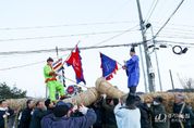 [경기뉴스원/경기뉴스1] | 지난 3일 정월대보름에 이천시 신둔면 용면리에서는 한 편의 걸판진 대동놀이가 벌어졌다. 36년 만에 떠오른 붉은 달의 개기월식 아래서 130여 명의 마을주민들과 김경희 이천시장, 박명서 이천시의회 의장을 비롯한 내빈들이 모인 자리에서 용줄다리기가 흥겹게 겨뤄졌다. 용면리 용줄다리기 보존회(회장 윤재홍)가 주최하고 주관한 용줄다리기 행사에는 지신밟기, 풍년기원제, 달집태우기, 화합의 한마당도 함께 진행됐다. 특히, ‘용면리 용줄다리기’는 그 역사가 200년 이상 전통을 가지면서 오늘날까지 이어 오고 있는 집단 민속놀이이자 한 해의 풍농을 기원하는 기원제 역할을 하는 무형유산이다. 다른 지역의 줄다리기 등과 비교할 때 비교적 전통적 모습을 잘 보전하면서 마을주민들을 중심으로 전승되고 있는 문화유산적 가치와 역사적·학술적·예술적 가치가 뛰어나 제20회 경기민속예술제 최우수상, 제58회 한국민속예술제 은상을 수상할 만큼 우수한 평가를 받고 있다. 용줄다리기에서는 암줄(여성 편)과 숫줄(남성 편)이 서로 교합하여 서로 당기고 끌리고 하는 겨루기 과정에서 여성 편이 이겨야 한 해의 풍농과 복을