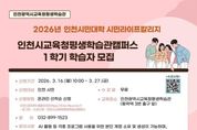 [경기뉴스원/경기뉴스1] | 인천광역시교육청평생학습관은 인천 시민의 AI·디지털 사회 대응 역량 강화를 위하여, 오는 16일부터 인천시민대학 ‘인천시교육청평생학습관캠퍼스’ 1학기 학습자를 모집한다. 주요 과정으로는 시민들의 디지털 문해력을 높이기 위한 ▲스마트한 AI 생활 첫걸음 ▲상황에 맞게 활용하는 스마트한 AI 생활 ▲생성형 AI 활용 숏폼 콘텐츠 만들기 ▲디지털 드로잉 굿즈 제작의 모든 것 ▲활용도 UP! 톡톡 튀는 이모티콘 만들기 등 5개 강좌가 마련됐다. 또한 장애인 맞춤형 교육으로 ▲디지털·AI 활용을 통한 일상 기록하기 ▲일상을 편리하게 스마트폰 활용하기 ▲챗GPT와 친해지기 등 3개 과정을 운영하여 정보 격차 해소에도 앞장설 계획이다. 수강 신청은 3월 16일 오전 10시부터 인천시민대학 홈페이지에서 선착순으로 진행되며, 수강료는 무료(재료비 개인 부담)이다. 자세한 사항은 인천시민대학 누리집을 확인하거나 평생학습관 평생교육부로 문의하면 된다.