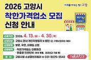 [경기뉴스원/경기뉴스1] | 고양특례시가 고물가 시대에 저렴한 가격과 청결한 위생상태 등으로 지역 물가안정에 기여할 ‘2026년 착한가격업소’를 신규 모집한다고 13일 밝혔다. 착한가격업소는 시민들에게 저렴한 가격으로 양질의 서비스를 제공하는 업소로, 시는 이번 모집을 통해 착한가격업소를 활성화하고 지역 경제에 활력을 불어넣고자 한다. 신청 대상은 고양시에 사업장을 둔 개인서비스업자 및 법인이다. 특히 업소에서 판매하고 있는 ‘착한가격메뉴’가 지역 상권의 평균 가격보다 저렴해야 하며 평균 가격은 고양시청 누리집에서 이달의물가정보를 참고하면 된다. 모집 기간은 이달 13일부터 30일까지로 방문, 우편, 전자우편 등을 통해 신청하면 된다. 이후 5월 중 심사 절차를 거쳐 착한가격업소를 선정할 계획이다. 시는 최종 선정된 착한가격업소에 인증표찰과 인증서를 교부하고 종량제봉투·소모품 지원, 공공요금 지원 등 맞춤형 인센티브를 제공할 예정이다. 아울러 착한가격업소는 행정안전부 및 고양시청 누리집에 게재되고, 네이버 지도·카카오맵·티맵 등 주요 민간 포털 앱에 ‘착한가격업소’ 인증 마크가 표시돼