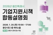[경기뉴스원/경기뉴스1] | 용인특례시는 오는 20일 오후 3시 시청 에이스홀에서 ‘2026년 중소기업 지원시책 합동설명회’를 개최한다고 9일 밝혔다. 이번 설명회는 자금‧수출‧연구개발 등 다양한 중소기업 지원 정책 정보를 안내하고, 기업들이 이를 효율적으로 이용할 수 있도록 하고자 마련됐다. 시는 용인시산업진흥원과 금융지원, 기업환경 개선, 해외판로 개척, 기술지원 등 올해 지원사업 내용을 설명한다. 중소벤처기업진흥공단, 기술보증기금, 경기신용보증재단, 소상공인시장진흥공단 등 4개 기관은 기업 운용에 도움이 되는 자금과 금융 지원책을 소개한다. 경기도경제과학진흥원, 경기테크노파크, 경기지방중소벤처기업청 등 3개 기관은 해외시장 판로 개척, 연구개발(R&D) 지원사업 등을 설명한다. 설명회 후엔 이들 기관과 별도 부스에서 기업인과 맞춤형 상담도 할 예정이다. 참여를 원하면 오는 20일까지 시 홈페이지나 용인기업지원시스템을 통해 신청하면 된다. 당일 현장 신청도 가능하다. 자세한 사항은 용인기업지원시스템 용인시소식을 참고하거나 용인시 기업지원과로 문의하면 된다.