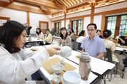 [경기뉴스원/경기뉴스1] | 대전 동구는 13일 이사동 유교전통의례관 대전별서에서 관내 어린이집 영유아 부모를 대상으로 전통 다도와 향 체험을 결합한 ‘차향유정(茶香有情) 차와 향기를 나누다’ 프로그램을 운영했다고 밝혔다. 이번 프로그램은 육아로 지친 부모들이 바쁜 일상 속에서 잠시나마 자신을 돌보고 내면의 평온을 되찾을 수 있도록 기획된 힐링 프로그램으로, 총 3회에 걸쳐 운영될 예정이다. 첫 회차인 이날 체험에는 박희조 동구청장을 비롯해 영유아 부모 20여 명이 참여해 전문 강사의 지도 아래 차를 우리고 마시는 전통 다도 예절을 배우고, 전통 향을 활용한 명상 활동을 통해 감각을 깨우며 마음을 다스리는 시간을 가졌다. 특히, 단순한 체험을 넘어 전통문화의 정취를 느끼고 바쁜 육아 생활 속에서 마음의 여유를 되찾는 의미 있는 시간으로 꾸며져 참여자들의 큰 호응을 얻었다. 박희조 동구청장은 “이번 다도체험을 통해 부모님들이 짧지만 깊은 쉼 속에서 마음의 여유를 되찾는 시간이 됐길 바란다”며 “앞으로도 전통문화를 쉽고 친근하게 접할 수 있는 다양한 프로그램을 지속적으로 발굴해 나가겠다”고 말했다. &