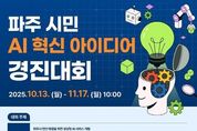 [경기뉴스원/경기뉴스1] | 파주시는 10월 13일부터 11월 17일까지 시민이 직접 참여하는 ‘파주 시민 인공지능(AI) 혁신 아이디어 경진대회’를 개최한다고 밝혔다. 이번 경진대회는 대한민국 국민 누구나 참여 가능하며, 인공지능(AI)을 활용해 행정과 시민 생활 속 다양한 문제를 해결할 수 있는 창의적 아이디어를 발굴하기 위한 시민 참여형 공모전으로, ‘인공지능(AI)과 함께하는 시민 중심의 파주, 인공지능(AI) 선도 도시’ 구현을 목표로 하고 있다. 개인 또는 팀 단위로 참가할 수 있으며, 참가자는 지정 주제(① 출판단지 활성화, ② 재해·재난 관리, ③ 동물 보호, ④ 도로 안전, ⑤ 교통 질서) 또는 자율 주제(파주시 현안 해결을 위한 생성형 인공지능(AI) 서비스 개발) 중 하나를 선택해 아이디어를 제출하면 된다. 예선은 온라인 방식으로 진행되며, 심사위원 평가 70%와 참가자 투표 30%를 합산해 상위 10개 팀이 본선에 진출한다. 본선은 현장 발표 형식으로 열리며, 창의성, 실현 가능성, 적합성, 인공지능(AI) 기술 활용성 등을 종합 평가해 최종 순위가 결정된다. 총 상금은 800