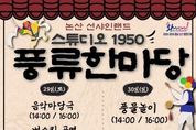 [경기뉴스원/경기뉴스1] | 논산시와 논산문화관광재단(이사장 백성현)은 오는 11월 29일부터 30일까지 양일간, 선샤인랜드 1950스튜디오에서 ‘스튜디오1950 풍류 한마당’을 개최한다. 이번 행사는 전통문화 공연과 시민참여형 체험 프로그램이 어우러진 복합문화행사로, 지역민과 관광객이 함께 즐기는 소통의 장이 될 예정이다. 행사기간 동안 오후 13:00~17:00까지 다양한 프로그램이 진행되며, 메인 공연으로는 전통시장 상인들의 일상과 애환을 그린 마당극이 29일 오후 14:00와 16:00시 두 차례 펼쳐진다. 생생한 연기와 서민들의 정이 묻어나는 이야기로 구성된 이번 마당극은 관객들에게 웃음과 감동을 선사할 예정이다. 공연이 끝난 뒤에는 출연진과 관람객이 함께 참여하는 거리 코스튬 퍼레이드가 약 20~30분간 진행된다. 배우와 시민이 어우러져 선샤인랜드 1950스튜디오 거리 곳곳을 행진하며 현장 분위기를 더욱 뜨겁게 달굴 예정이다. 또한 공연 중간 시간에는 지역 가수의 버스킹 공연이 이어져 관람객이 자유롭게 음악을 즐길 수 있는 열린 문화 무대로 꾸며진다. 이와 함께 상시 운영되는 체험 프로그램도 눈길을