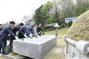 [경기뉴스원/경기뉴스1] | 경상남도는 제66주년 4·19혁명 기념일을 맞아 19일 오전 창원시 마산회원구 국립 3·15민주묘지를 찾아 민주주의 수호를 위해 헌신한 영령들의 숭고한 정신을 기렸다. 이날 참배에는 박완수 도지사를 비롯해 최학범 경남도의회 의장, 박종훈 경상남도교육감, 김상우 경남동부보훈지청장 및 4·19혁명 관련 단체 대표와 유가족 등이 참석해 민주 영웅들의 넋을 위로했다. 참배는 박완수 도지사가 참석자를 대표해 민주묘역 현충탑 앞에 헌화와 분향을 하는 것으로 시작됐다. 이어 참석자 전원은 함께 묵념하며 민주주의를 향한 4·19혁명의 의의를 되새기는 시간을 가졌다. 박 지사는 참배 후 방명록에 “정권독재와 부정선거에 항거했던 4·19 정신을 이어받아 경남 발전에 힘쓰겠습니다”라고 적으며 민주주의 가치 계승을 통한 도정 발전의 의지를 기록했다. 이어 박 지사는 행사에 참석한 4·19혁명 관련 단체장 및 유가족들과 인사를 나누며 감사의 뜻을 전했다. 박 지사는 격려의 자리에서 “오늘날 대한민국 민주주의의 뿌리인 4·19혁명의 정신은 우리 경남의 자부심”이라며 “유공자와 유족들의 희생이 헛